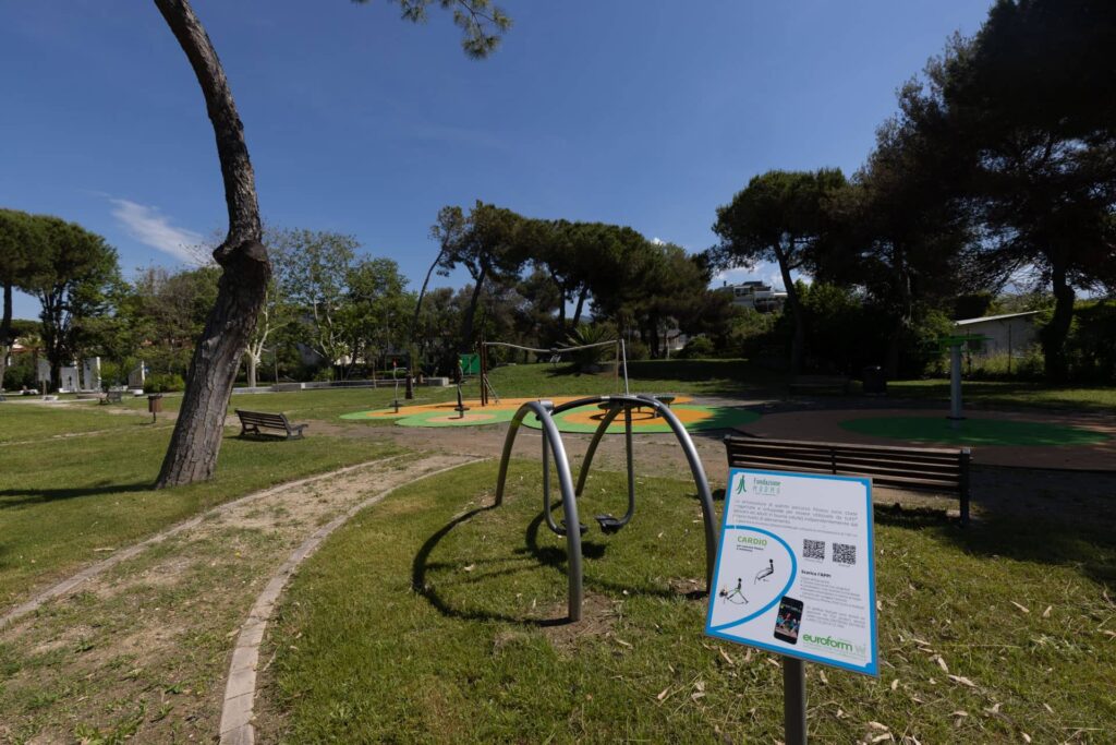 Percorso fitness: è stato realizzato un nuovo percorso fitness, nelle aree perimetrali, dotato di impianto di illuminazione e di 11 attrezzature funzionali (di cui due inclusive) innovative, di alta qualità, con relativi cartelli esplicativi per esercizio, per aumentarne la fruibilità ed incentivarne una frequentazione anche degli sportivi di tutte le età.